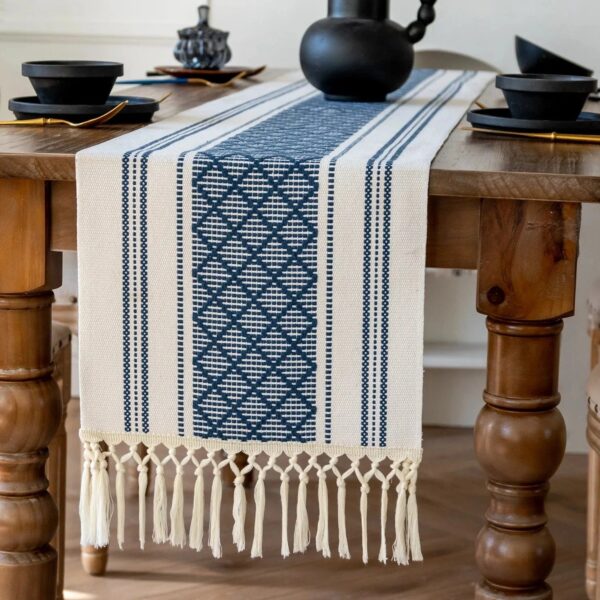 Pourquoi choisir le Chemin de table Bohème Bleu et Blanc à longues franges ?