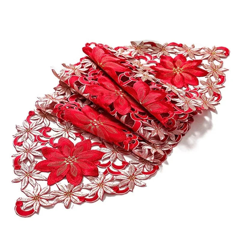 Chemin de Table Fleur de Noël – Découpes Ajourées Luxe : Art et Artisanat Textiles
