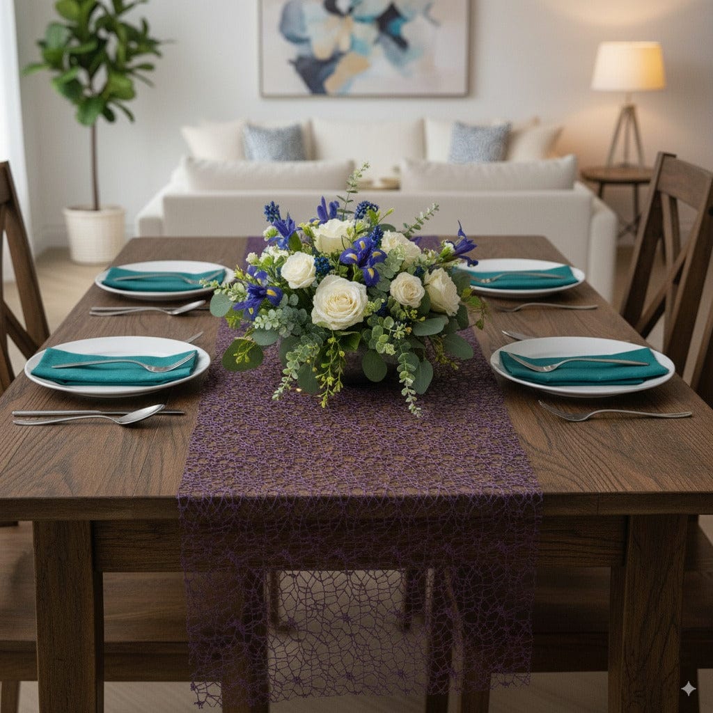 Chemin de Table Organza Violet – Transformations Créatives et Artistiques