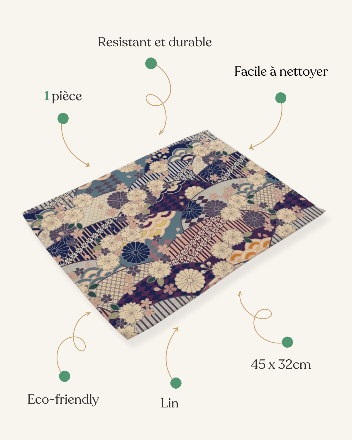 Le Set de Table Imprimé Japonais Lin est plus qu’un simple accessoire; c’est un véritable atout décoratif qui transforme l’ambiance de votre salle à manger. Grâce à son design élégant et ses motifs inspirés du Japon, ce set de table est idéal pour créer une ambiance accueillante et raffinée.