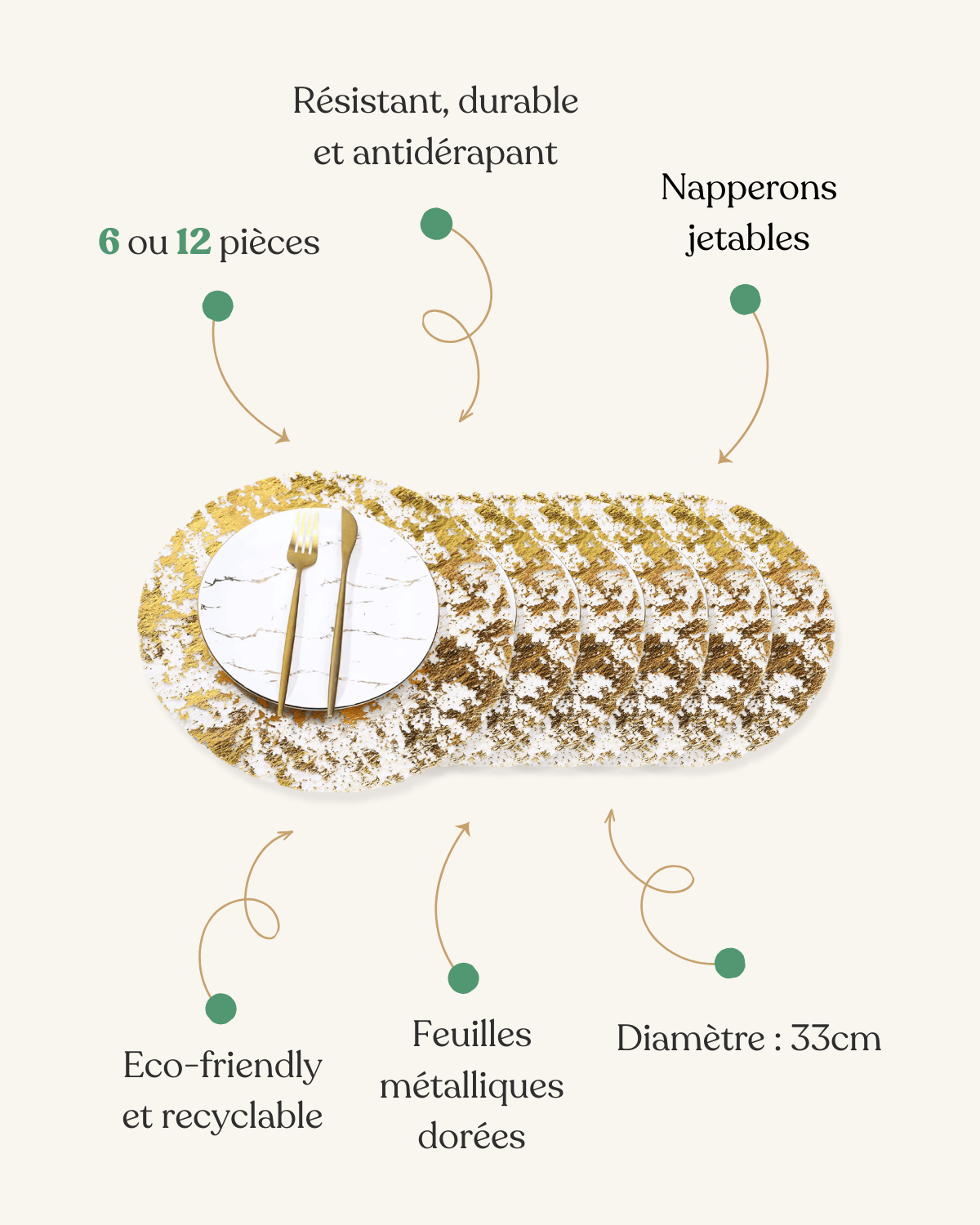 Set de Table Papier Feuille Dorée – Jetable Festif – Lot de 6 : La solution pratique