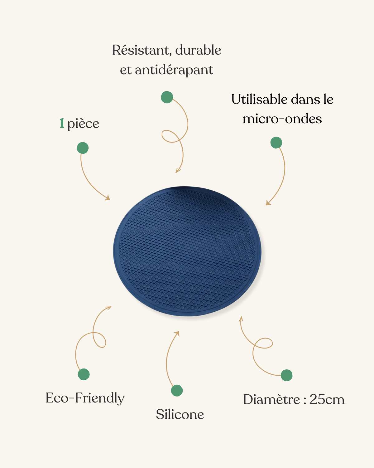 Facile à nettoyer et résistant, ce set de table est conçu pour un usage quotidien intensif. Sa matière en silicone lui confère une robustesse remarquable tout en permettant un entretien simple et rapide. Ainsi, vous gagnez du temps pour profiter de vos repas.