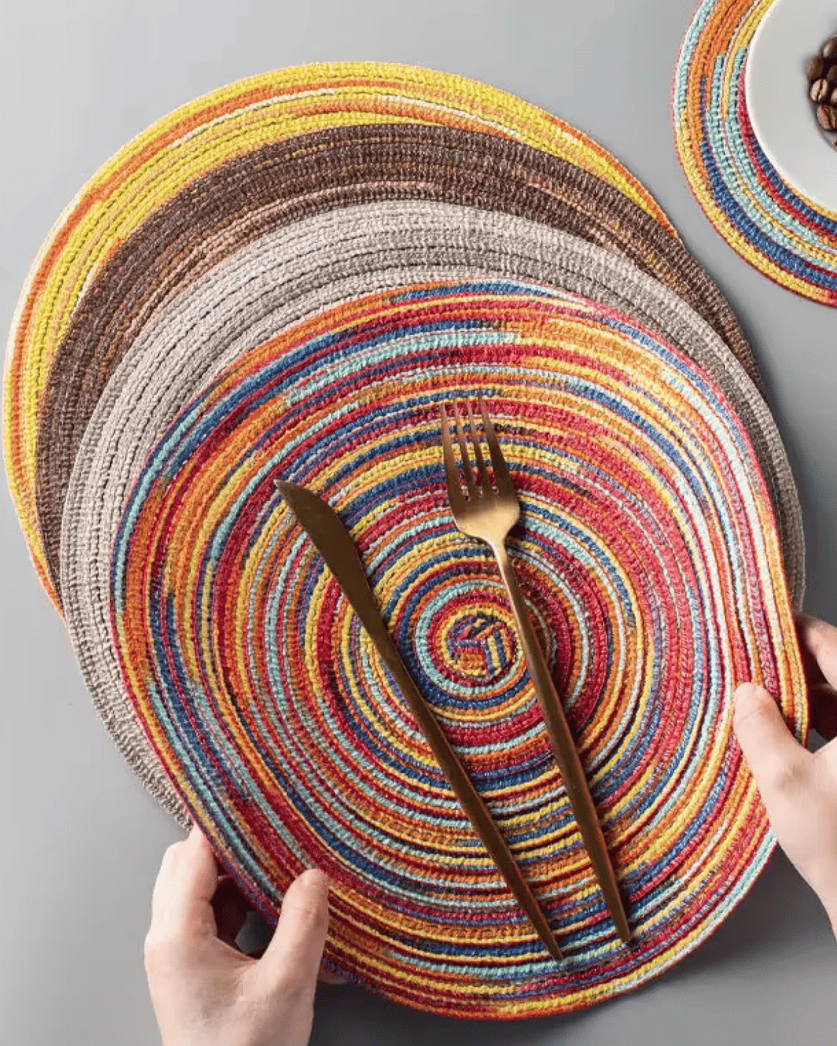 Le confort et la robustesse du Set de Table Rond Spirale – Coton Tressé et Coloré