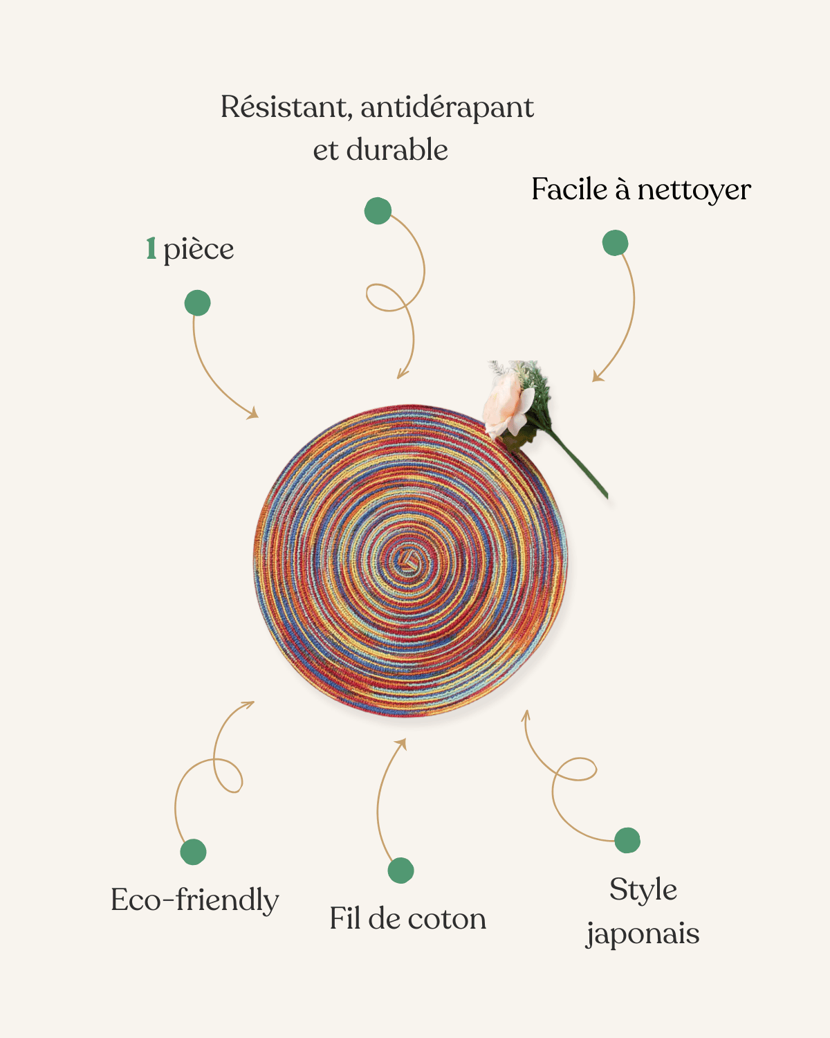 Soyez le premier à laisser votre avis sur “Set de Table Rond Spirale – Coton Tressé et Coloré”